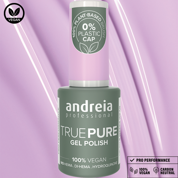 TRUE PURE - la nouvelle gamme de vernis semi-permanent Andreia Professional formulée sans HEMA, Di-HEMA et hydroquinone. 100% vegan, sans odeur et sans solvants.