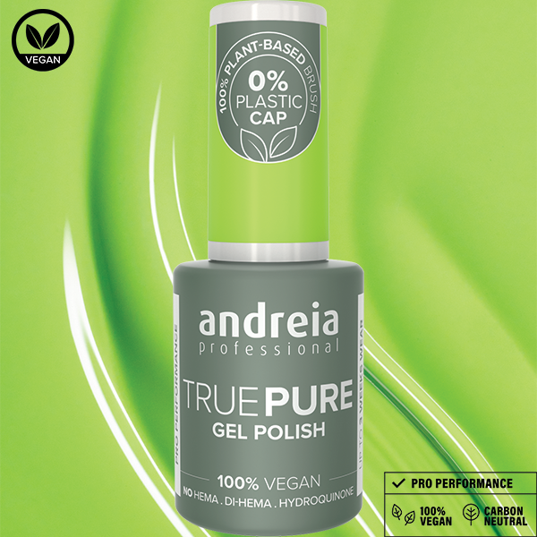 TRUE PURE - la nouvelle gamme de vernis semi-permanent Andreia Professional formulée sans HEMA, Di-HEMA et hydroquinone. 100% vegan, sans odeur et sans solvants.