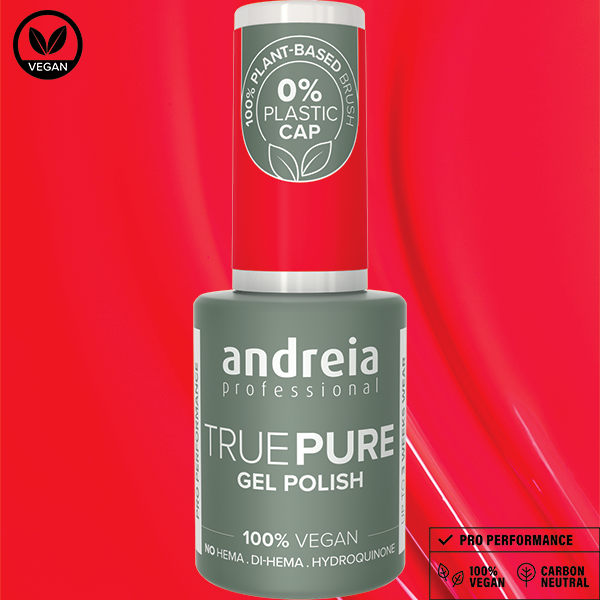 TRUE PURE - la nouvelle gamme de vernis semi-permanent Andreia Professional formulée sans HEMA, Di-HEMA et hydroquinone. 100% vegan, sans odeur et sans solvants.
