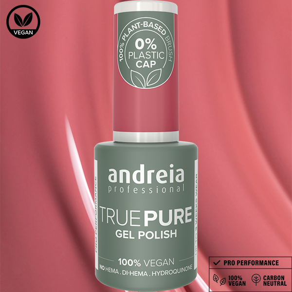 TRUE PURE - la nouvelle gamme de vernis semi-permanent Andreia Professional formulée sans HEMA, Di-HEMA et hydroquinone. 100% vegan, sans odeur et sans solvants.