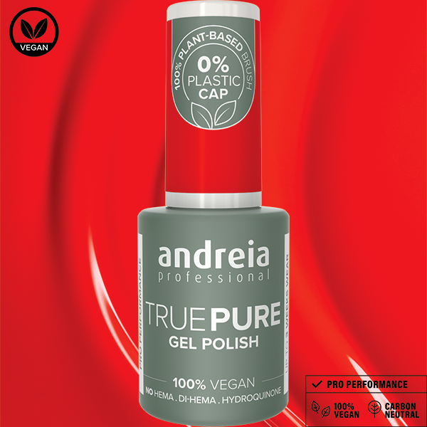 TRUE PURE - la nouvelle gamme de vernis semi-permanent Andreia Professional formulée sans HEMA, Di-HEMA et hydroquinone. 100% vegan, sans odeur et sans solvants.