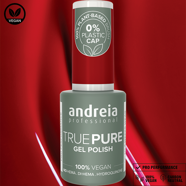 TRUE PURE - la nouvelle gamme de vernis semi-permanent Andreia Professional formulée sans HEMA, Di-HEMA et hydroquinone. 100% vegan, sans odeur et sans solvants.
