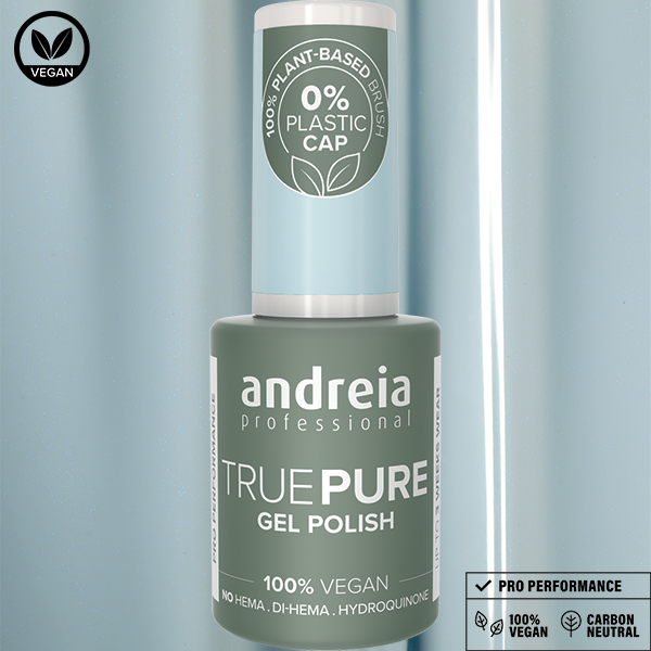 TRUE PURE - la nouvelle gamme de vernis semi-permanent Andreia Professional formulée sans HEMA, Di-HEMA et hydroquinone. 100% vegan, sans odeur et sans solvants.